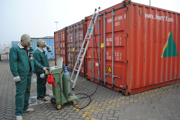 日前,中南地區第一臺最現代化的“移動(dòng)式微電腦施藥器”在長(cháng)沙新港投入使用。近日,湖南省進(jìn)出口檢驗檢疫局技術(shù)人員,在長(cháng)沙新港首次對國際集裝箱采用封閉式消毒、熏蒸。這是我省使用的第一臺消毒熏蒸設備,結束商檢開(kāi)箱施藥消毒熏蒸的歷史。