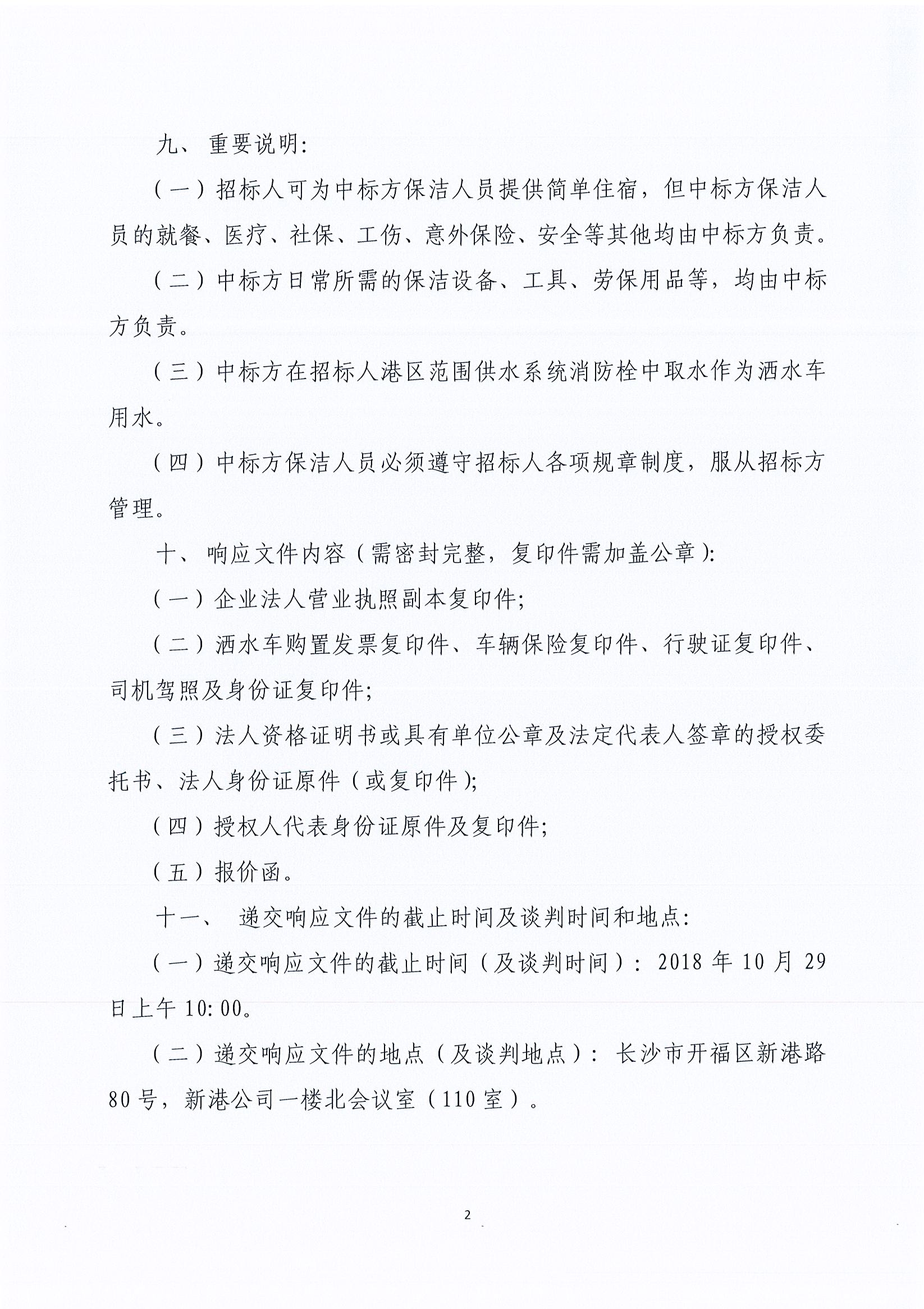 湖南長(cháng)沙新港有限責任公司 港區內衛生外包服務(wù)競爭性談判邀請公告