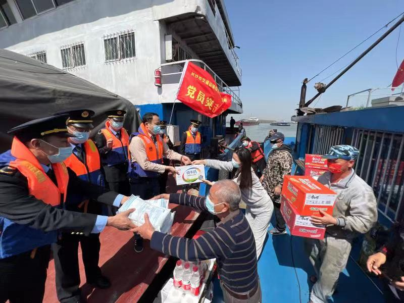 隨后,兩個(gè)支部一行人乘坐執法艇在霞凝港區對停留船舶船員開(kāi)展“強服務(wù)、暖民心”活動(dòng),給船員送去了防疫和生活物資,同時(shí)提醒船員及時(shí)關(guān)注健康碼狀態(tài),靠泊作業(yè)期間做好個(gè)人防護等疫情期間注意事項。