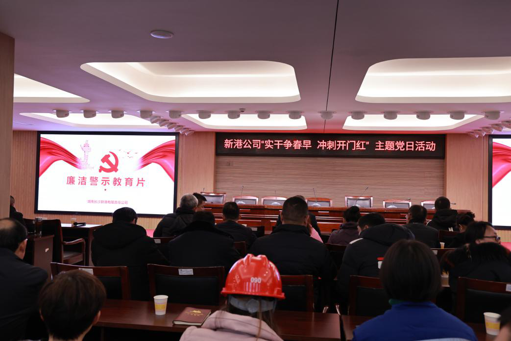 實(shí)干爭春早 沖刺開(kāi)門(mén)紅 中共湖南長(cháng)沙新港有限責任公司委員會(huì )主題黨日活動(dòng) 為扎實(shí)擔當起學(xué)習宣傳貫徹黨的二十大精神排頭兵的光榮使命,教育引導廣大黨員干部從黨的二十大專(zhuān)題學(xué)習汲取精神力量,在新的一年里,進(jìn)一步堅定理想信念,主動(dòng)肩負時(shí)代重任,開(kāi)啟新征程。2月17日上午,長(cháng)沙交通集團新港公司開(kāi)展學(xué)習貫徹黨的二十大精神“實(shí)干爭春早,沖刺開(kāi)門(mén)紅”主題黨日活動(dòng),此次活動(dòng),以“微影片、微黨課、微實(shí)事、黨員教育培訓”等多種形式推動(dòng)黨的二十大精神落地見(jiàn)效。公司黨委副書(shū)記、董事、總經(jīng)理辛華作宣講,班子成員、公司中層管理人員、各支部黨員共76人參加活動(dòng)。 深學(xué)悟初心-【微影片】 全體黨員干部集中觀(guān)看2022年度湖南反腐警示片《忠誠與背叛》。通過(guò)觀(guān)看警示教育片,引導黨員上好廉潔教育“新年第一課”,教育全司廣大黨員干部面對誘惑要保持清醒的頭腦,自覺(jué)抵制各種腐敗現象的侵蝕,牢固樹(shù)立正確的人生觀(guān)、利益觀(guān)和權力觀(guān),干干凈凈做事,老老實(shí)實(shí)做人。  篤行求實(shí)效-【微黨課】 學(xué)理論之思,踐初心之行。新港公司以“實(shí)干爭春早,沖刺開(kāi)門(mén)紅”為主題,從七個(gè)黨支部里的推選黨員干部帶頭講,鼓勵黨員人人上臺講【微黨課】,突出“微”這個(gè)形式,聚焦“黨”這個(gè)靈魂,利用“課”這個(gè)載體,教育廣大黨員從不同層面、不同角度深刻領(lǐng)會(huì )黨的理論創(chuàng )新成果,以新思想、新觀(guān)念、新思路、新舉措,開(kāi)創(chuàng )公司高質(zhì)量發(fā)展新局面。