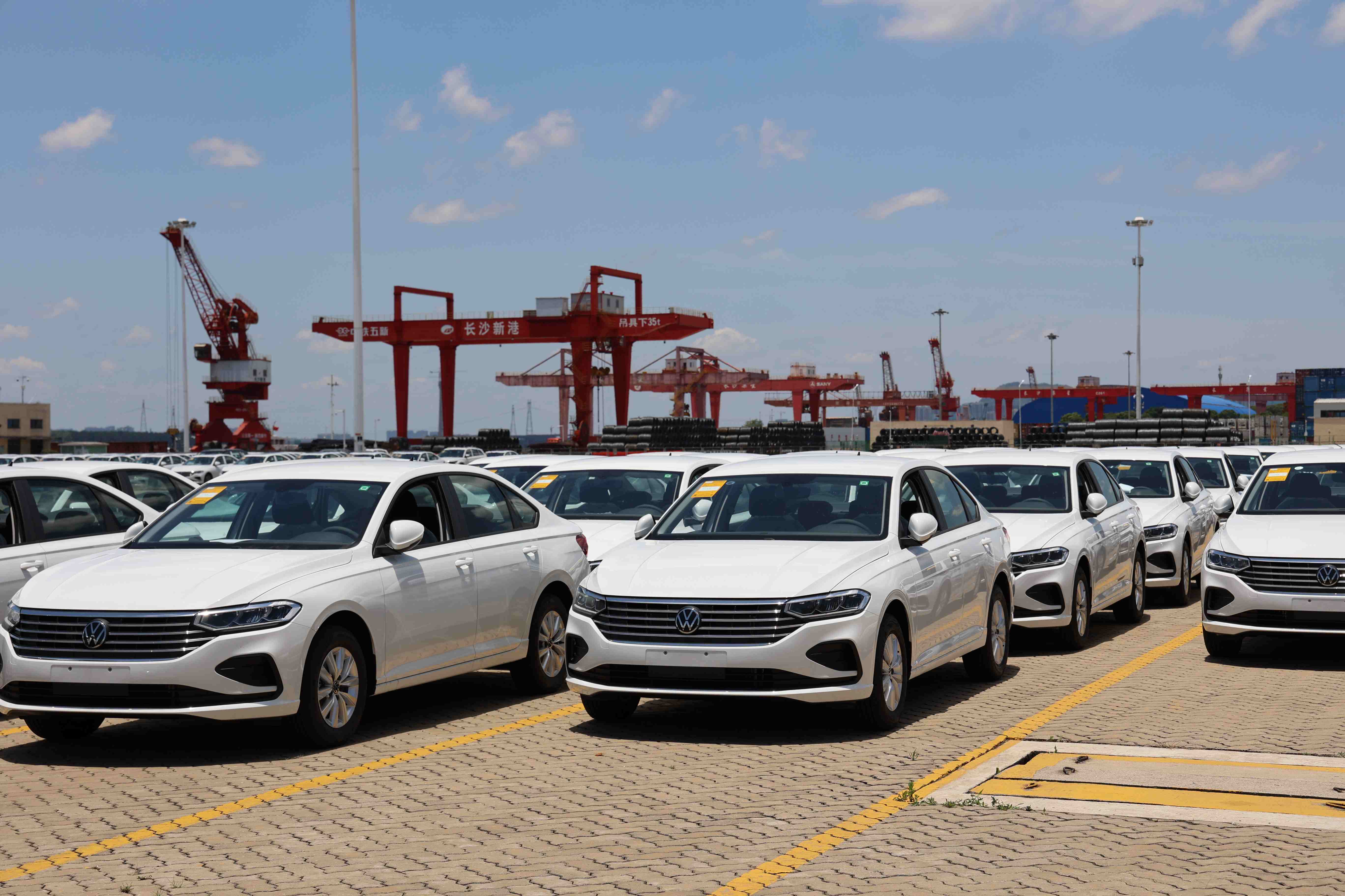 在歷經(jīng)十小時(shí)作業(yè)后,該批次車(chē)輛全部順利集港裝船。殘霞潛江波光爍,船鳴三聲水天開(kāi)。18時(shí),“港達6號” 滾裝船滿(mǎn)載357臺上汽大眾汽車(chē),沐浴晚霞余暉,順利駛出長(cháng)沙新港碼頭。