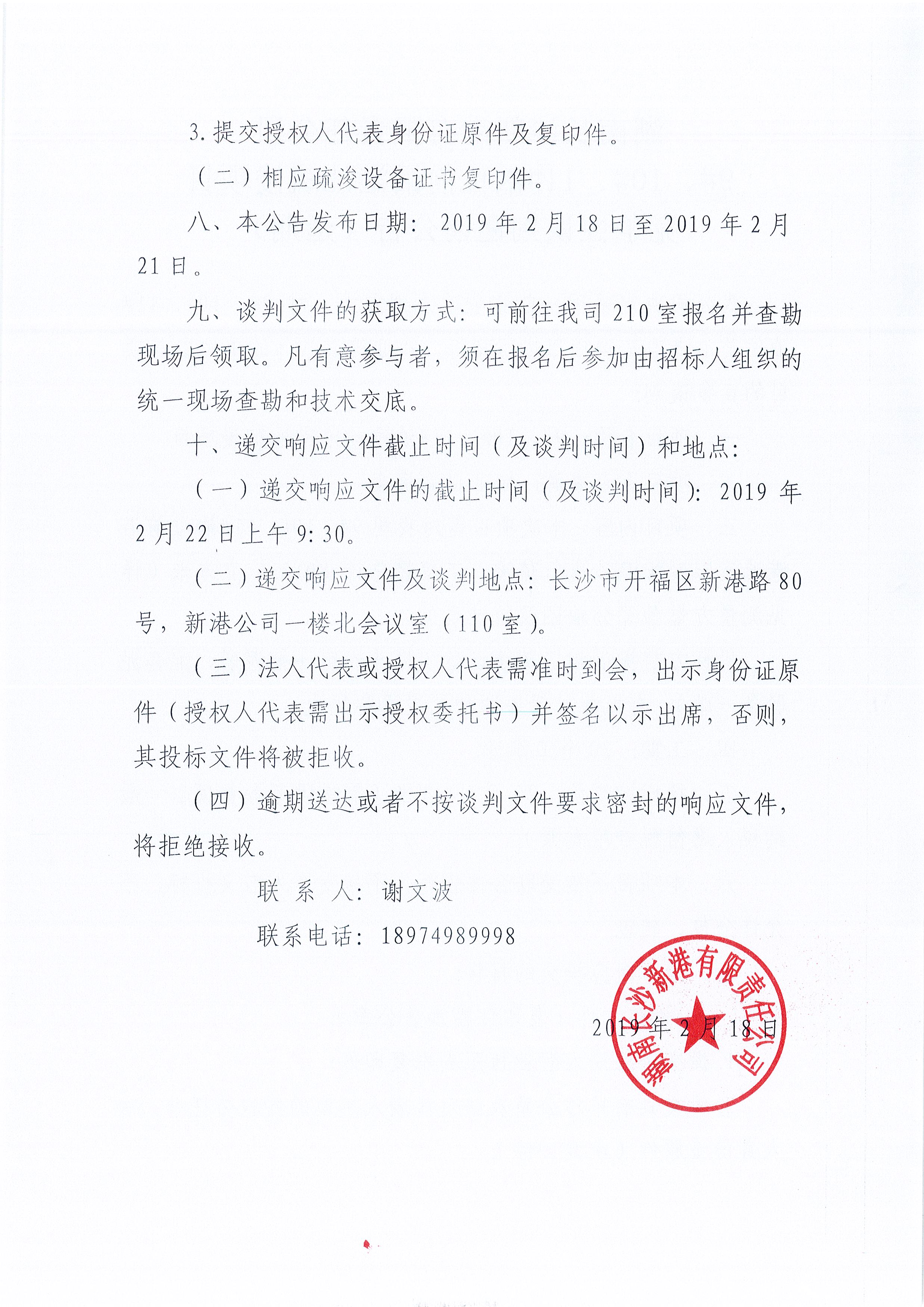 湖南長(cháng)沙新港有限責任公司 9#、10#、11#泊位前沿港池疏浚項目競爭性談判邀請公告(延期)