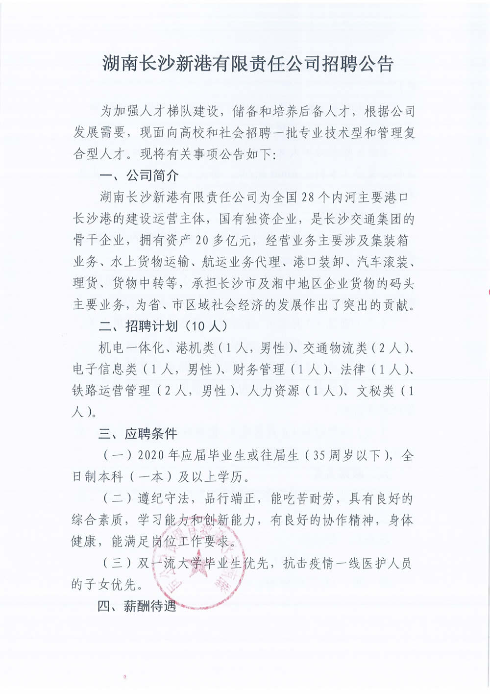 湖南長(cháng)沙新港有限責任公司招聘公告