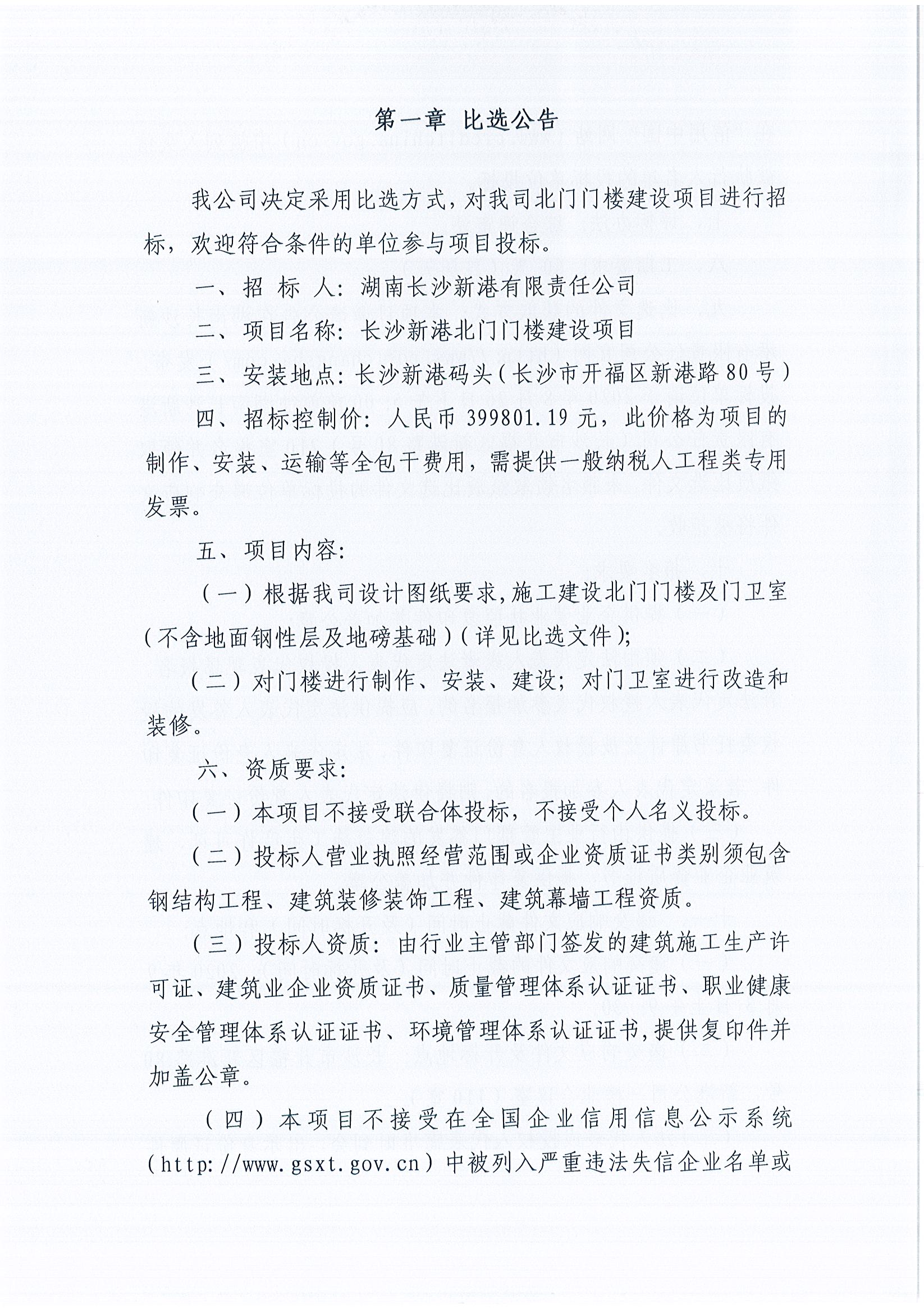 長(cháng)沙新港北門(mén)門(mén)樓建設項目《比選公告》