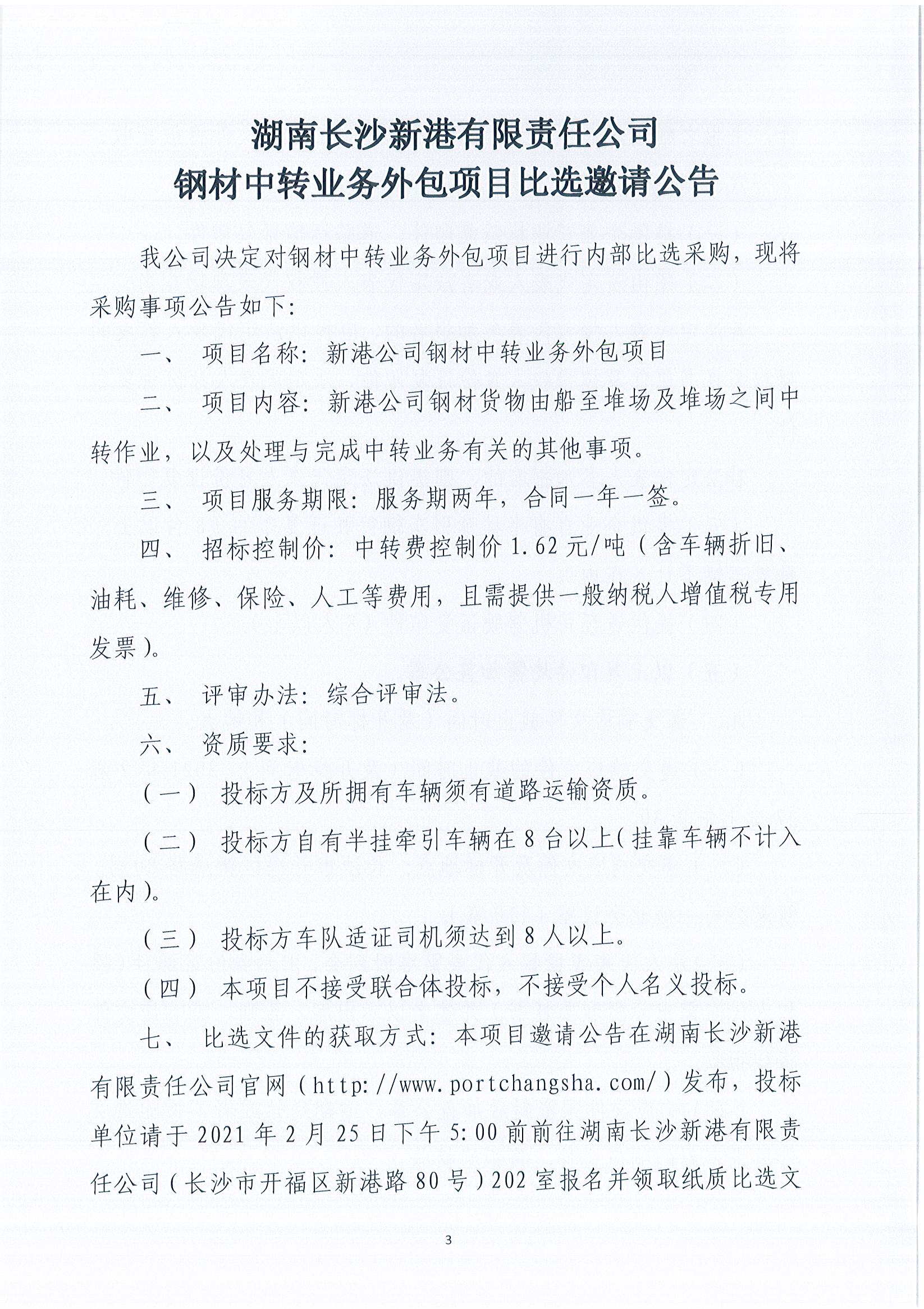 湖南長(cháng)沙新港有限責任公司鋼材中轉業(yè)務(wù)外包項目比選邀請公告