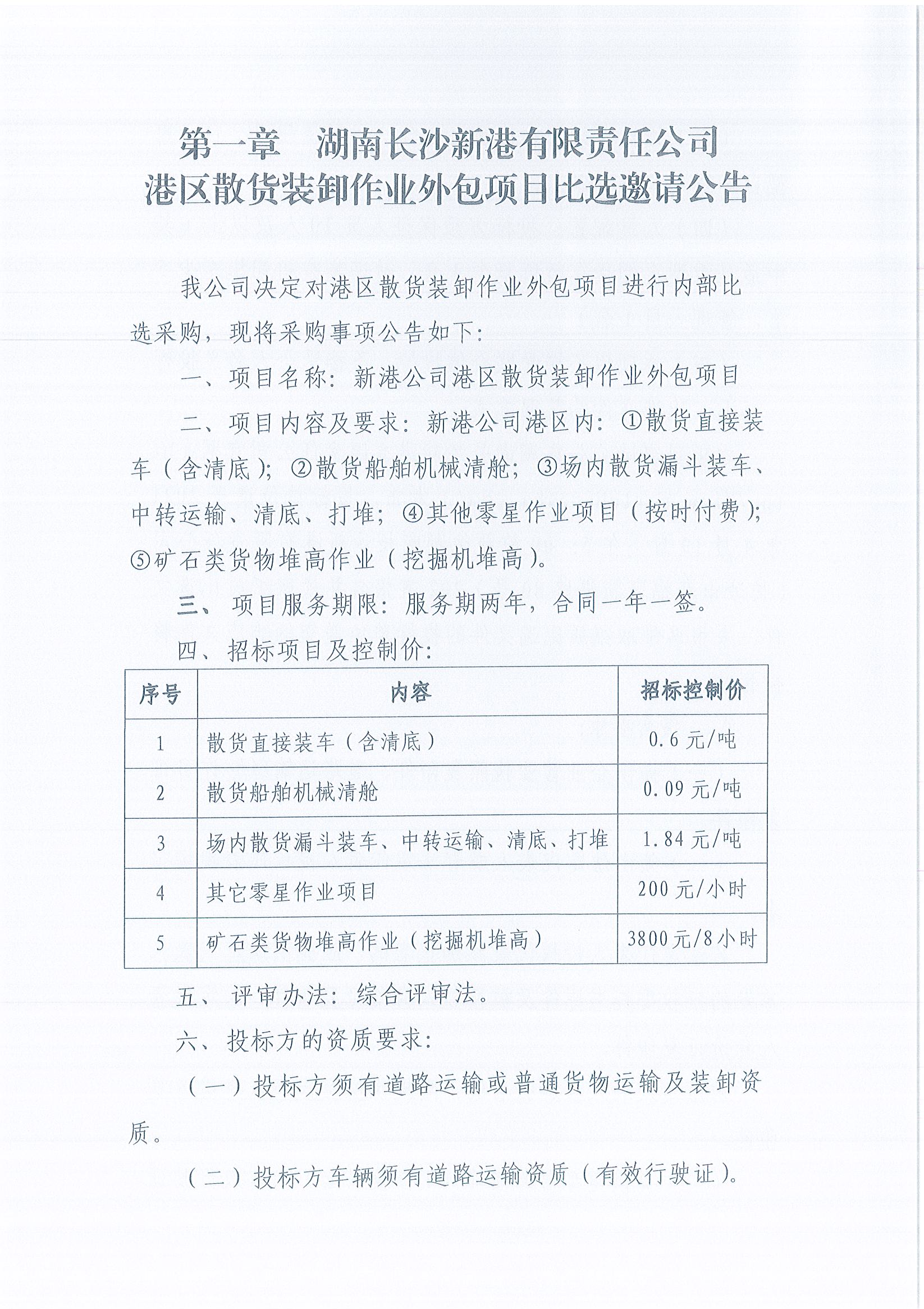 湖南長(cháng)沙新港有限責任公司港區散貨裝卸作業(yè)外包項目比選邀請公告