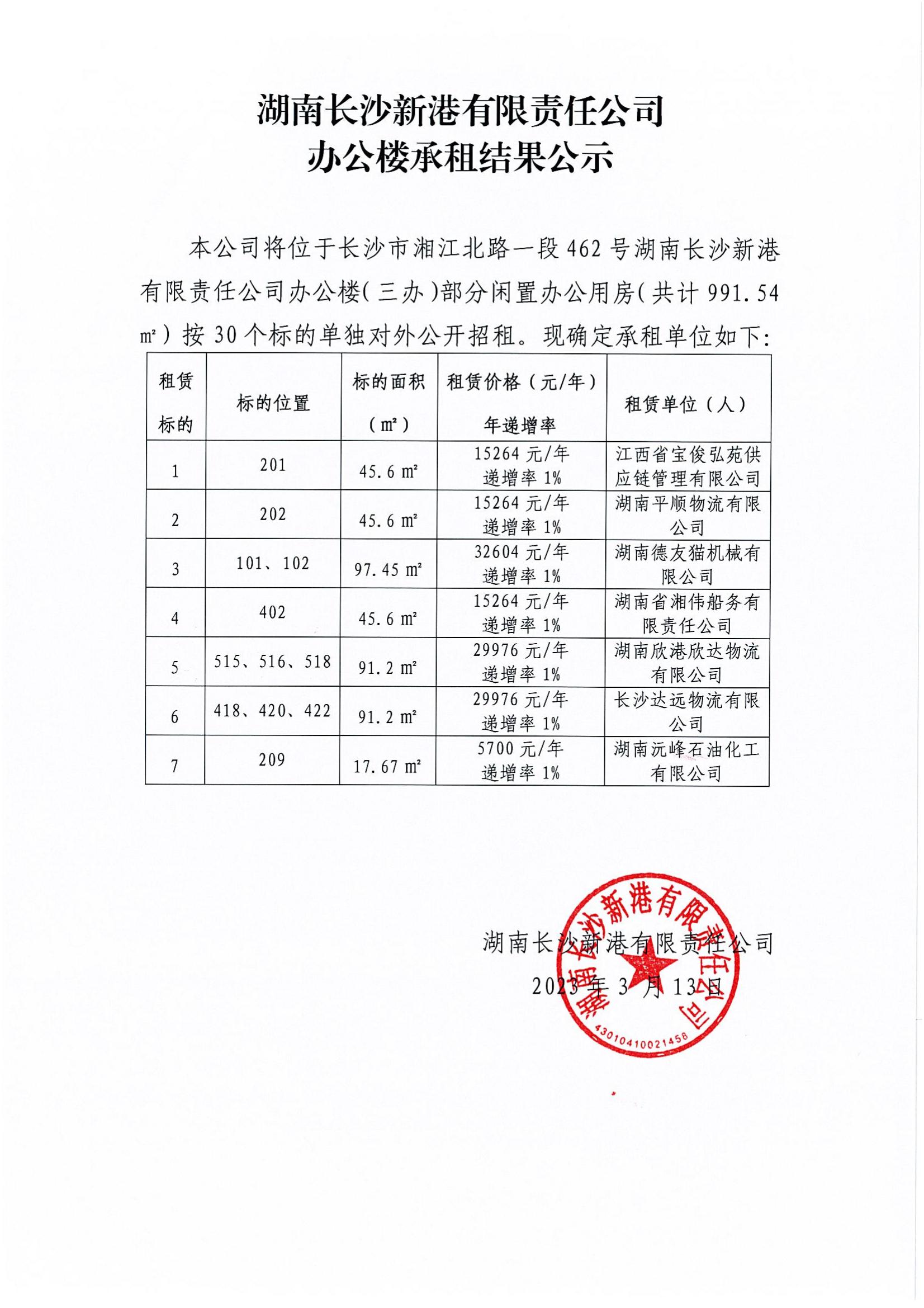 辦公樓承租結果公示