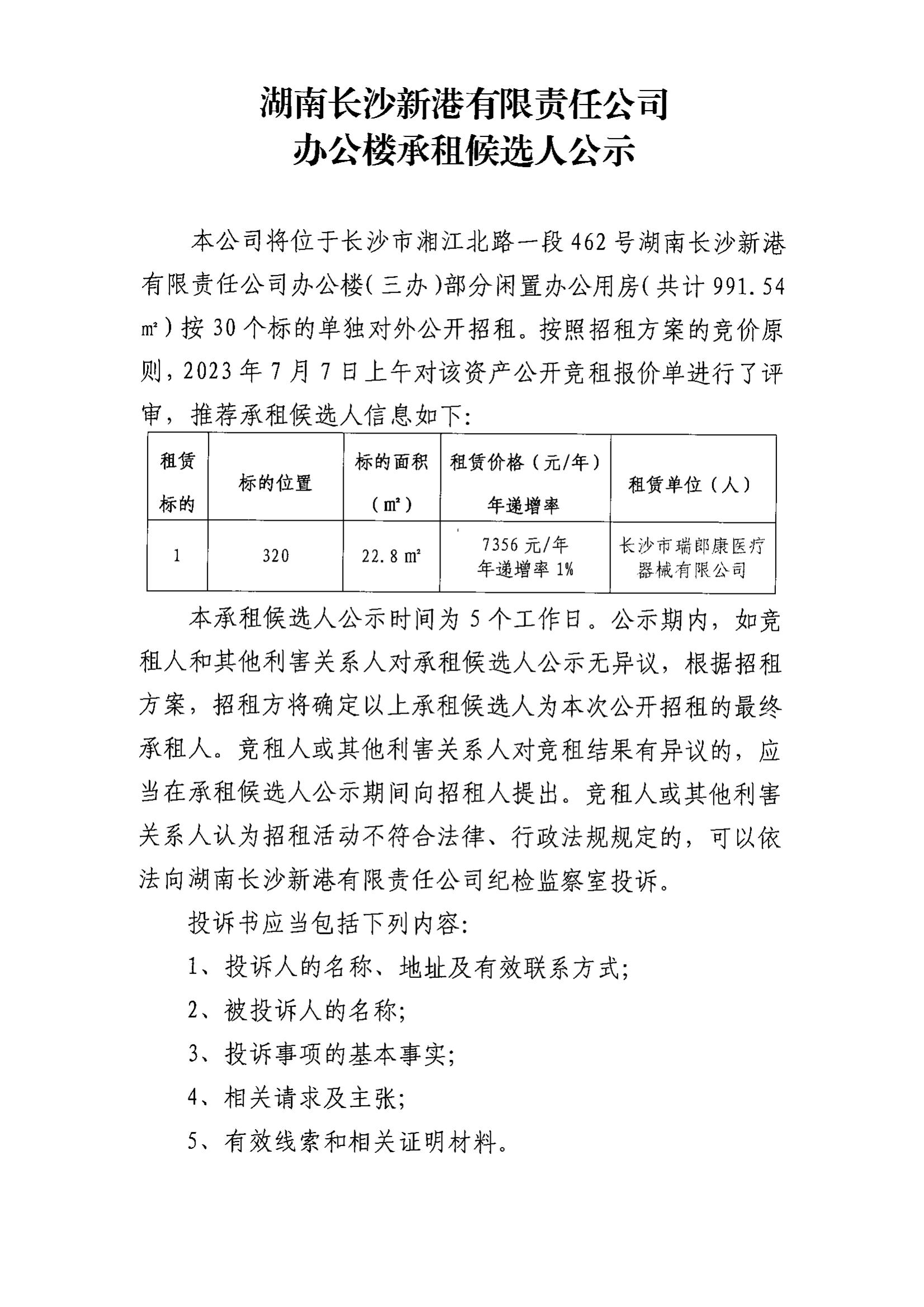 湖南長(cháng)沙新港有限責任公司辦公樓承租候選人公示(320)