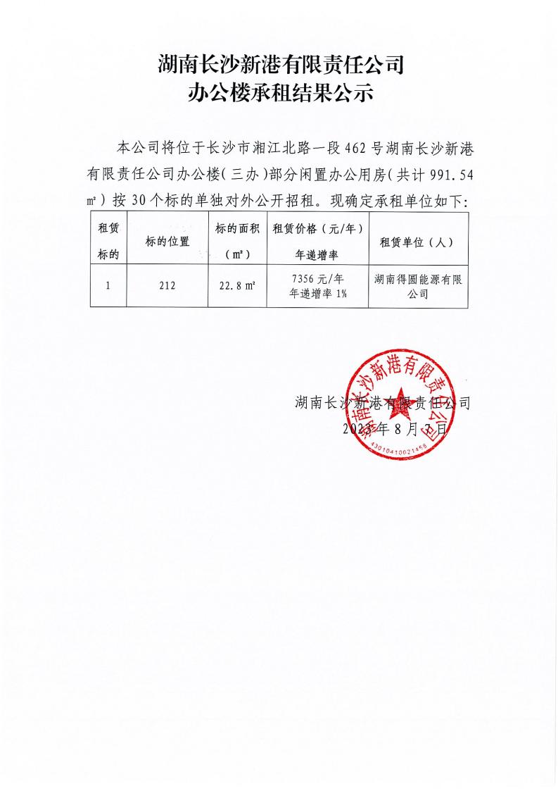 湖南長(cháng)沙新港有限責任公司辦公樓承租結果公示
