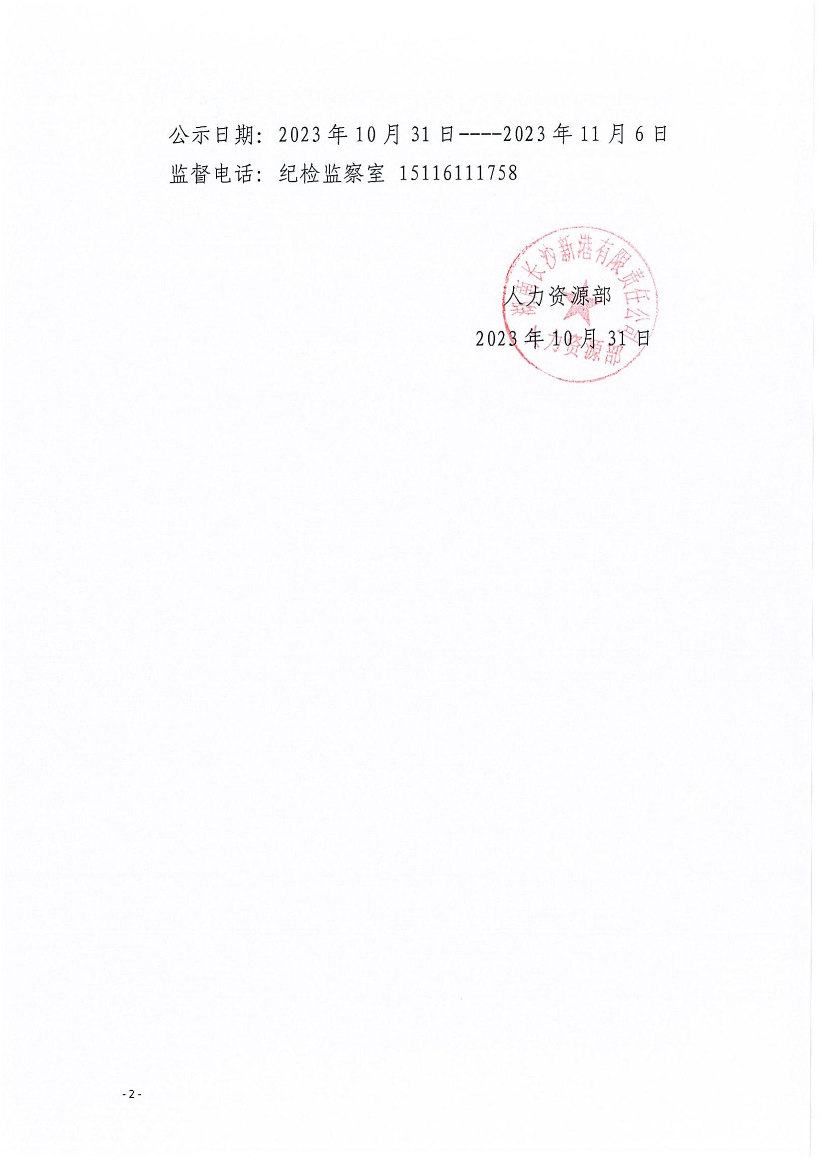 關(guān)于新港公司2023年度主管競聘成績(jì)的公示