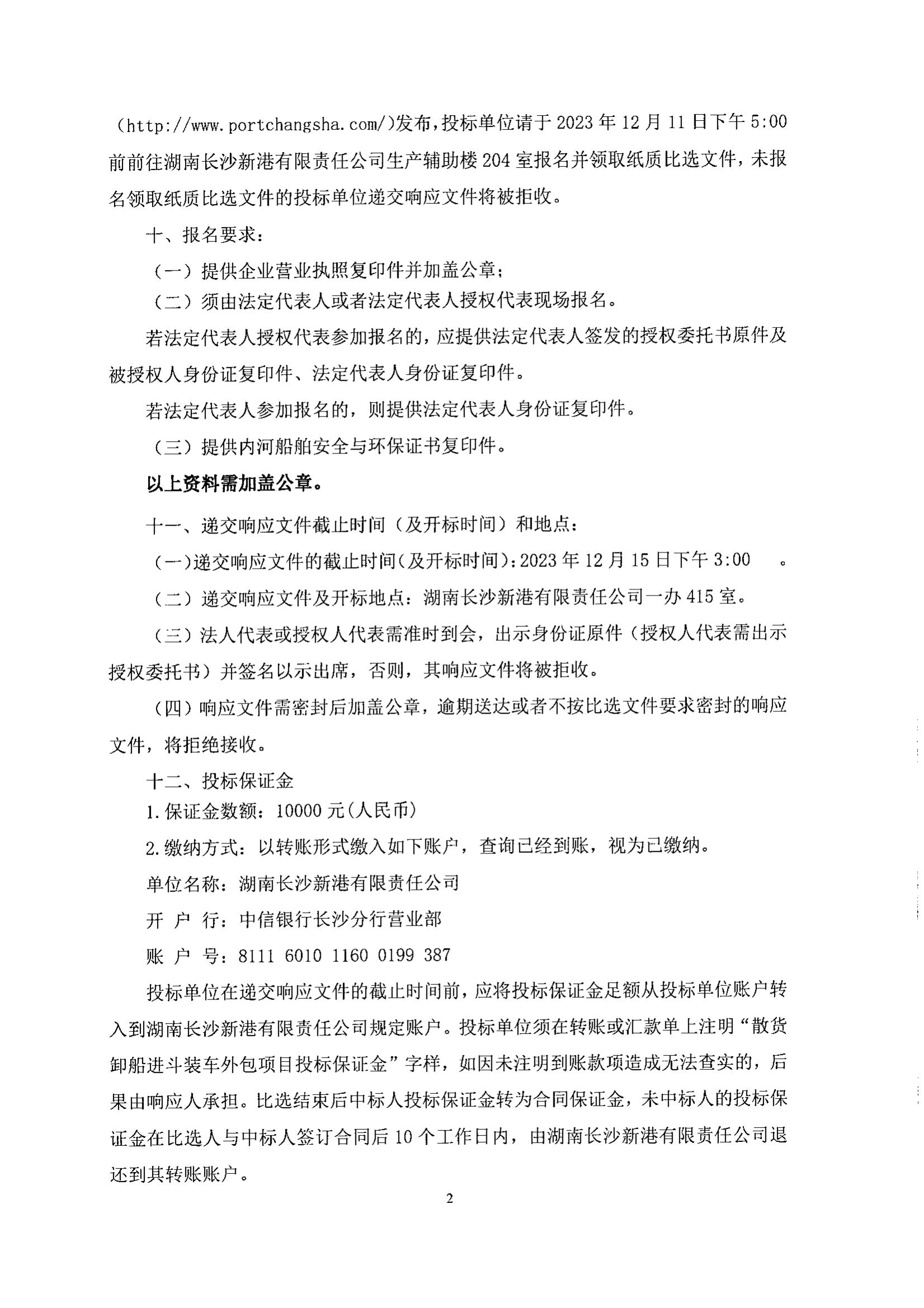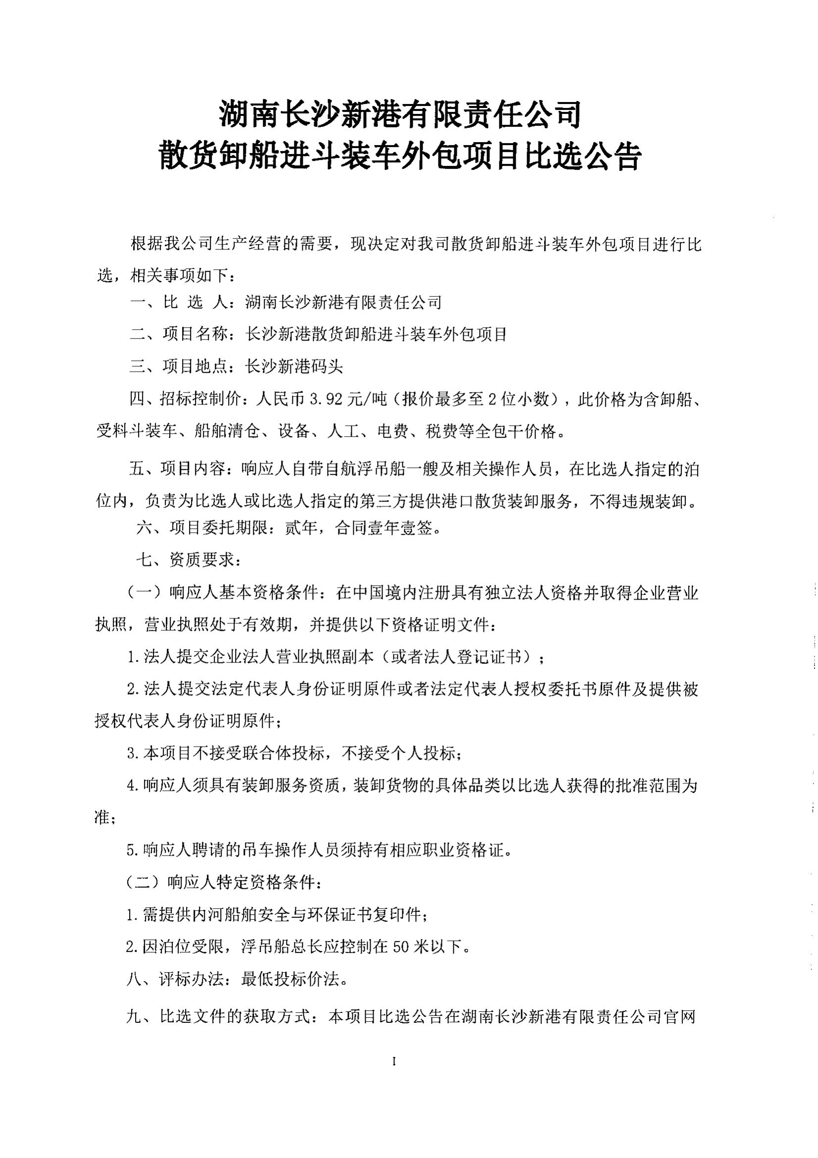 湖南長(cháng)沙新港有限責任公司散貨卸船進(jìn)斗裝車(chē)外包項目比選公告