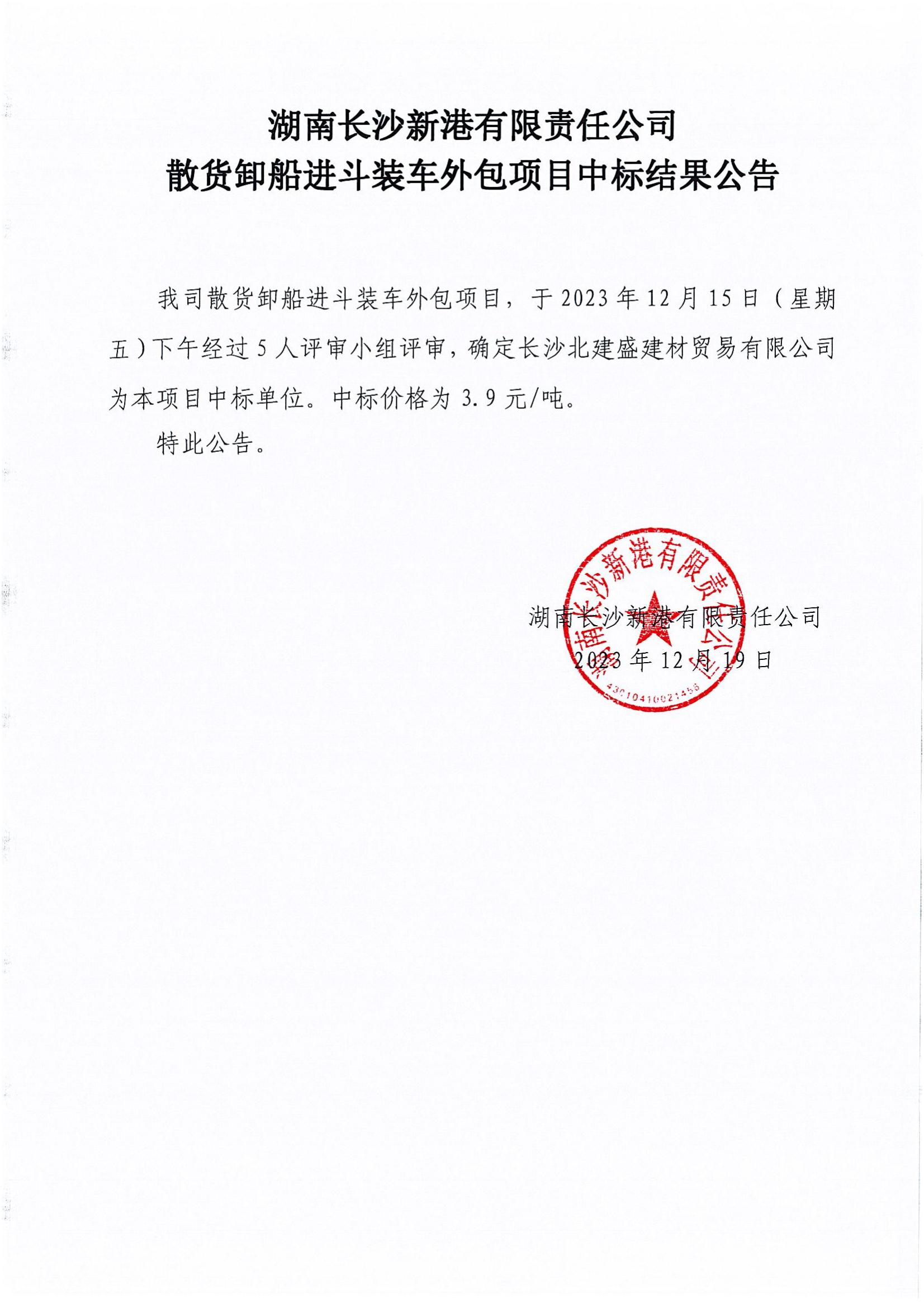 長(cháng)沙新港散貨卸船進(jìn)斗裝車(chē)外包項目中標結果公示