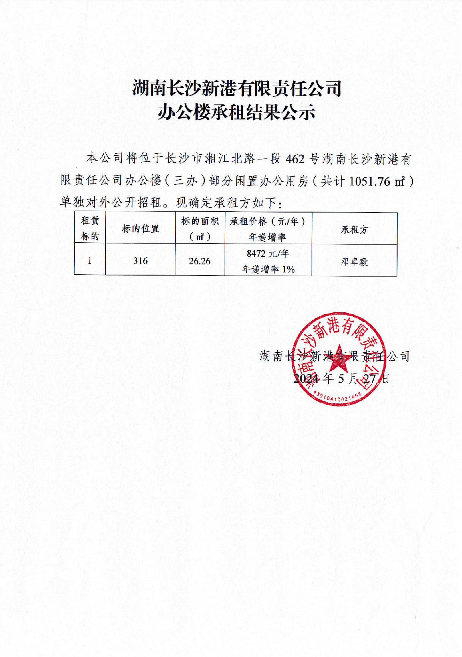 湖南長(cháng)沙新港有限責任公司辦公樓承租結果公示